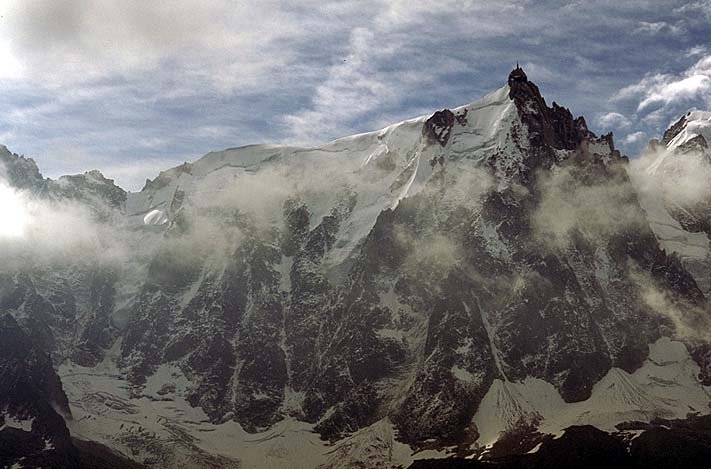 Одно объединяет все маршруты, экспонированные в южном направлении: нужно обладать недюжим чутьем и огромным опытом, что бы вычислить идеальный момент для их прохождения - они очень быстро превращаются в растаявшую сказку. Пара теплых дней - и маршруты стаивают с лица земли.... то есть в этом случае с лица скалы. Уже не один раз выдающиеся альпинисты оказывались в идиотской ситуации: в кошках перед сухими южными стенами. Долгое время лед был коньком британских альпинистов. Уже не один десяток лет они практически "живут" на туманных, покрытых тонкой ледовой глазурью стенах Бен Нэвиса. Здесь постоянно все меняется, натуральный лед сменяется тонкой ледяной глазурью, снежные пассажи - толстыми слоями крепкого инея и трещинами, заполненными замерзшим мхом. И то, что у нас называют "Dry-Tooling", считая это нечто очень модерновым, практикуется там уже не одним поколением альпинистов. Замечу на полях: и в Европе тоже. Лучший тому пример - Josef Knubel, прошедший восточную стену Игюи дю Грепон, чисто скальный маршрут, во время прохождения которого он заклинивал клювик в трещинах и за счет этого проходил сложные участки. Давно известно, что условия на маршруте диктуют стиль прохождения. Некоторые стены, чисто скальные по характеру, превращаются весной в комбинированное эльдорадо для ледолазов. Как всегда, в роли пионеров от альпинизма выступили британцы. Именно они принесли моду на комбинированные маршруты на большие шамонийские стены. В 1979 году во время первого зимнего прохождения Rebuffat-Terray, чисто скального маршрута на северной стене Игюи дес Пелеринс, Alan Rouse и Rab Carrington применили кошки и инструменты для прохождения забитых льдом трещин. Чуть позже Andy Parkin и Therry Renault прошли в том же стиле Lesueur на Гран Дрю. Своим первым маршрутом в подобном стиле Gabarrou называет Fantasia per a Ghaccatore, пройденный им в 1989 году на перевал Кол Мауди. Узкие кулуары, тонкий лед, сменяющийся скальными участками, характеризуют и последующие первопрохождения из этого периода. Медленно, но неумолимо наступает эра микстового лазанья, главным апологетом которого в то время стал Mаrc Twight. Он вышел на арену и стал мгновенно известен благодаря своим сумасшедшим миксовым линиям, но и в немалой степени благодаря своим провоцирующим статьям в специальной периодике. Его маршруты Birthright на Гран Шармоз и There Goes the Neighborhood на Игюи сан Ном принадлежат к высшего класса и высшей сложности линиям в Шамони. Правда, ввиду невероятно быстрого развития ледолазанья и микста эти маршруты уже потеряли ауру "сверхчеловеческих". С тех пор как миксовый альпинизм был признан широкой восходительской общественностью, перед альпинистами вновь встали поля необозримой целины! И это в массиве Монблана, где альпинизмом люди занимаются уже не первое столетие. Мода на микст идет по окружающим Шамони стенам бодрым шагом. И не удивительно, что Patrick Gabarrou принимает в этом активнейшее участие. Подтверждением этому служит его новейший шедевр Sonam на Енвер дес Игийс. 25 лет прогресса поменяли технику ледового альпинизма до неузнаваемости, и это не только в области экстрима. Новые веяния безусловно влияют и на классический альпинизм. Благодаря тренировкам на водопадах и постоянному улучшению снаряжения уже многие альпинисты в силах ходить культовые комбинированные маршруты 60-70 годов. Количество повторений крутых линий на Игюи Корт и И