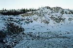 С этой же стоянки недалеко и до карьера. Карьер доступен для тренировок только в нерабочие дни, в будни здесь ведутся взрывные работы. Карьер представляет огромный интерес структурой склонов, максимально приближенной к условиям реального горного рельефа. Это сильно разрушеные скалы и осыпи, с выходами монолитов. Существует опасность камнепадов (на склонах работать желаельно в каске!). Ничего подобного на обычных карельских скалах не найти. Высота стенок карьера в настоящий момент не менее 40 м, а восточный (дальний от технологической дороги) склон имеет протяженость около 2х веревок, что позволяет в полном объеме отрабатывать взаимодейсвие связок. Зимой склоны вообще не отличить от типичного горного рельефа: заснеженые полки, разрушенные гребни, монолиты с трещинами под самые разные закладки и крючья; после оттепелей и весной возможно образование ледовых потоков.