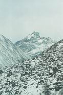 Миша с Олегом, по-видимому, ушли на разведку, и я остался около их рюкзаков, поджидая остальных. Да и не хочется мне двигаться, просто рад передышке. Здесь за перегибом в какой-то мере спокойно, а что там творится, нетрудно себе представить. В перевальных местах, где потоки воздуха перетекают из одной долины в другую, тихая погода всегда редкость, а уж во время циклона воздушные массы, найдя лазейку в горной цепочке, устремляются в такие понижения как голодные псы за подачкой. Подошли Распутин и Пучков, все в снегу, а шикарная распутинская борода вообще под покровом натечного льда. - Неужто перевал? - не поверил Пучков. Я подтвердил: - Пришли. Устраивайтесь. Мужики на разведку ушли. - Где же тут устроиться можно? Везде крутяк. - Становись под камнем, площадку вытопчи и бросай рюкзак. Ты отчего такой вежливый сегодня? Разрешения спрашиваешь, где стать можно. - Пучков хохотнул - Еще скажи, простите, извините, подвиньтесь, как в театре. - А как же! Здесь не только свежий воздух, но и отношения наши и помыслы должны быть кристально чистыми. Пока Пучков искал место, где пристроить свою котомку, Распутин уже надел кошки и пошел наверх, бросив нам на ходу.