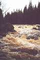 р.ИййокиРека вытекает из оз.Исо-Ийярви, которое протокой Ниванйоки соединяется с пограничными озерами Матриярви. Урез воды в Исо-Йярви 86 м, таким образом, на 35-километровом отрезке до впадения в Ладогу река теряет более 80 метров по высоте. Ширина русла составляет 5-10 м. Вероятно, река может быть полностью пройдена в высокий весенний паводок. Заброска к началу сплава довольно проблемная: попутным автотранспортом от Лахденпохья или от ст.Ихала. Можно более чем вдвое сократить протяженность маршрута, начав его от ж/д моста; в таком случае подходы сокращаются до 2 км по шпалам или 1 км по Сартавальскому шоссе от ст.Ихала. но при этом выше остаются многие примечательные места... Участок верхнего течения, от оз.Исо-Ийярви до урочища Лумиварак, нами не был исследован. На карте на выходе из озера обозначен порог. Ниже река протекает в болотистой низине и вряд ли особо интересна. В 4 км ниже пересечения грунтовой дороги, связывающей пос.Райвио с трассой "Лахденпохья - Кааламо", на реке первый исследованный порог. Падение около 2 м, большие камни в русле, ширина реки не превышает 5 м. Ниже опять тянется плес, лишь изредка прерываемый быстротоками. Встречаются завалы. По берегам тайга, дикие пойменные луга, иногда небольшие скалы. Через 4 км течение резко убыстряется, на реке более чем километровая шивера с большим падением и пологими скальными плитами. В паводок препятствие проходимо, требуется предварительная разведка, так как встречаются бревна поперек русла. Ниже шиверы ширина реки примерно 10 м, через 1,5 км путь преграждает просевший до воды деревянный мост, сразу за которым слив около 1 м со скальной ступеньки. Еще через 2 км по берегам появляются высокие скалы, низкий гул падающей воды предвещает одно из наиболее мощных препятствий на реке - разрушенный каменный мост со сливом около 3 м. Место очень красивое, сюда можно подойти по лесной дороге около 3 км от ст.Ихала. Перед мостом река течет практически в гранитном каньоне с быстрым течением, после моста выводная шивера, затем течение вновь успокаивается - до пересечения с ж/д веткой СПб-Сортавала. Необходимо отметить, что места в районе Ихалы вообще очень приятные, в лесах множество озер, огромные площади покрыты сухими сосновыми борами, народа нет. При строительстве железной дороги русло реки было пущено в короткий пробитый в скале коридор, сразу за высоким мостом (река течет в трубе большого диаметра, можно проплыть) небольшой порог с резким поворотом влево и отбойными валами от правого борта. Выше моста на шоссе СПб-Сортавала слив под старым мостом; ниже, вероятно, развалины старой мельницы в пос.Ихала (не обследованы). Ниже поселка ширина реки превышает 10 м, завалы практически кончаются. Река течет в глубокой долине. Примерно в 4 км ниже поселка на реке самое мощное препятствие - цепочка порогов водопадного типа с общим падением более 10 м и протяженностью несколько сот метров. Наиболее впечатляющи вторая, третья и четвертая ступени. По берегам скалы, в русле гранитные плиты. Ниже интересный объект природы - река делает петлю на 180 градусов, высокая перемычка между мысом и коренным берегом подмыта водой до ширины буквально десятка метров и представляет собой узкий гребень, обрывающийся в обе стороны. Через 2-3 км еще один порог со сложной структурой струи и падением около 1,5 м, на берегу развалины м