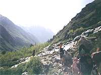 На следующий день мы встретили основную группу в Терсколе: Арчи, Сергей Руднев, Олег Акулов, Елена, Наталья Яблокова, Ксюша /Саха/, Лёлик, Сингл . Перебрали котомки, затарились продуктами, свели остатки десятилитровой канистры коньяка до минимума и начали подъем на Зеленку. Уже там к нам присоединились Каштанов Саша, Паша и Аня.
