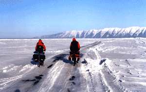 Идея пересечения озера Байкал на велосипеде по льду родилась не случайно. В январе 2000 года команда питерцев пересекла Ладожское озеро по льду легендарной "дороги жизни", а в марте того же года достигла монастыря на Кий острове, что в Белом море. Настал черед испытать себя в сложных условиях Восточной Сибири на льду величайшего из озер планеты. Участники экспедиции установили, что даже "лютая сибирская весна" с 35 градусными морозами не помеха для езды на велосипеде, а лед озера Байкал с торосами и снежными сугробами вполне пригоден для езды по нему на велосипедах. Кроме льда озера велосипедисты прошли 5 перевалов по зимникам, побывали в охотничьих зимовьях и удаленных сибирских поселках, шли заповедными тропами забайкальских заповедников и ночевали в палатках прямо посреди озера Байкал. В экспедиции "Трансбайкал 2001" принимали участие: Илья Гуревич, руководитель экспедиции, Анна Кононова и Виктор Шульц. |