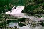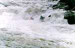 19.07. Утром дождь, вынужденное бездействие. К середине дня погода улучшилась, я уговорил Игоря подняться на катамаране вверх по реке до порога Красивый - за ложкой. Тем более, что это могло послужить хорошей тренировкой перед Кутсайоки. Обнос Ямы по левому (орографически) берегу, длина обноса не более 100 м. Затем порог Узкий, где удалось осуществить обнос прямо по скале в пороге, всего около 3 м, мимо основного слива. До порога Вечерний поднялись на веслах, порог обнесли по острову, справа (орографически) от основной протоки. Имеет место тропа, обнос около 150-200 м. Выше длинный плес на веслах, под порогом Красивый встретили наших знакомых казанцев. Ложна была найдена и спасена, мы в 3-й (в общей сложности) раз прыгнули с нижней ступени Красивого, испили чаю у гостеприимных казанцев и отправились обратно на порог Котел, к своей палатке. Проплыв Яму (нас опять развернуло и вынесло из бочки влево, на этот раз на разгруженном судне), под порогом увидели неожиданно народ и слева и справа - это группы, сплавлявшиеся по Кутсайоки, поднялись от слияния. Слева - латыши, справа - беларусы. Мы проплыли мимо них, но успели быть приглашенными на банкет. "Котел" на этот раз преодолели по левому языку слива, на удивление чисто в него зайдя. Перекусив, прошли по тропе 500 м до латышей, а от них, после довольно долгого общения, беларусы на своем К-2 перевезли нас к себе. Банкет, красная рыба... Чудом переплыли обратно к 5 утра. |